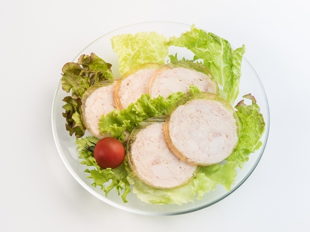 鳥胸肉を醤油味のゼリーで包んだチキンローフ1本と